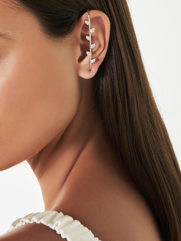 The Flora Hook Ear Cuff custom single piece made in 18K White Gold featuring Marquise Diamond weighing 1.80 carats combined total weight with F Color and VS1 Clarity.