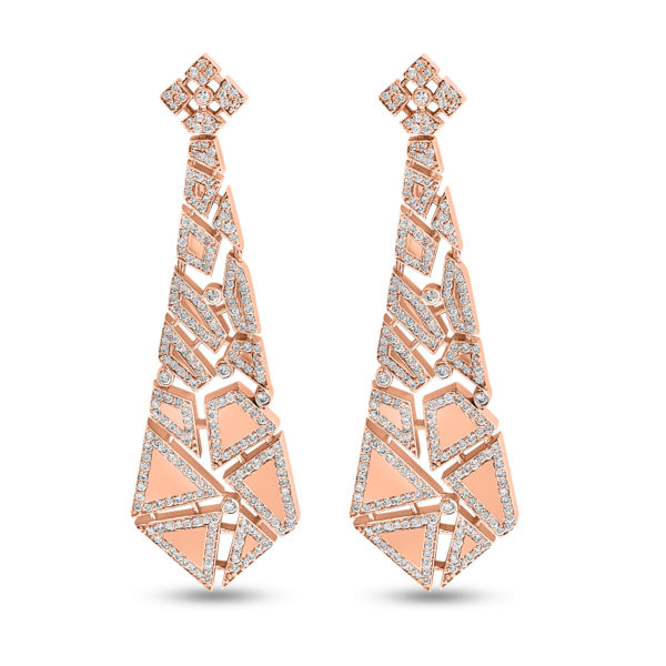 The Hidden Gem Earrings custom made in 18K Rose Gold featuring Round Diamond weighing 2.16 carats combined total weight with F Color and VS1 Clarity.