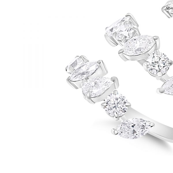 The Swirling Vortex of Diamonds White Gold Ring custom made in 18K White Gold featuring Round and Marquise Diamond weighing 3.80 carats combined total weight with F Color and VS1 Clarity