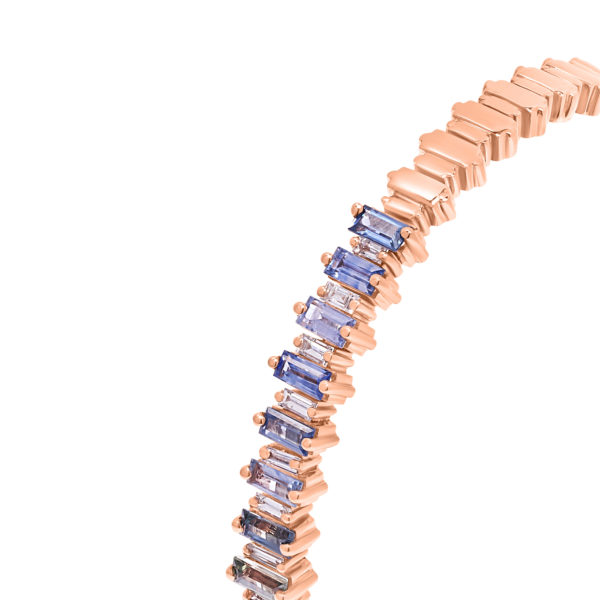 The Twinkling Sirius Bracelet custom made in 18K Rose Gold featuring Round Diamond and Sapphire weighing 0.63 carats combined total weight with F Color and VS1 Clarity.
