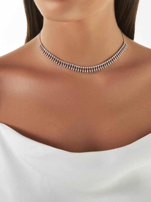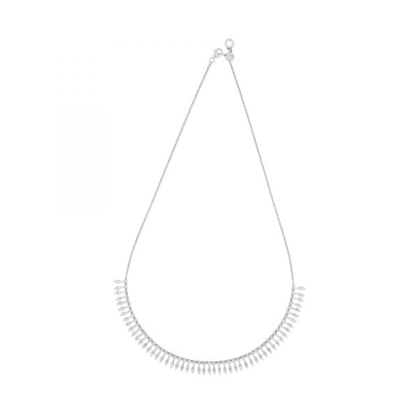 The White Gold Aura Necklace custom made in 18K White Gold featuring Round and Marquise Diamond weighing 2.08 carats combined total weight with F Color and VS1 Clarity.