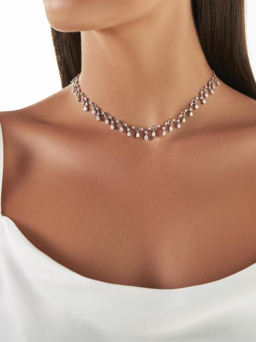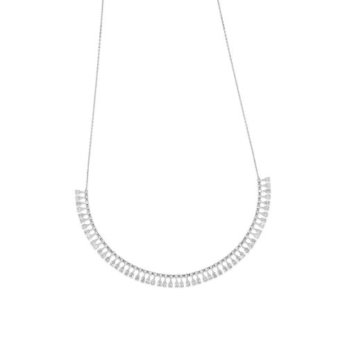 The Elegance Necklace custom made in 18K White Gold featuring Round and Pear Diamond weighing…