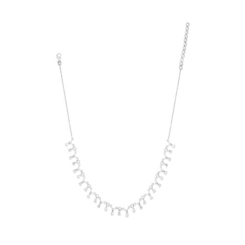 The Twinkling Waterfall Necklace custom made in 18K White Gold featuring Round and Pear Diamond…