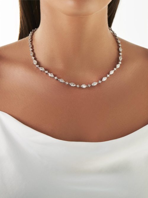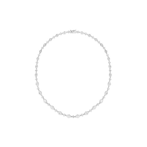 The White Gold Aura Necklace custom made in 18K White Gold featuring Round and Marquise…