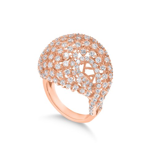 The Malika Ring custom made in 18K Rose Gold featuring Round Diamond weighing 3.56 carats…