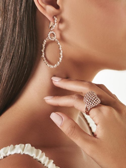 The Luminous Bloom Earrings made in 18K Rose Gold featuring Round Diamond and MO Diamond…
