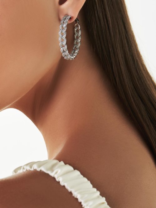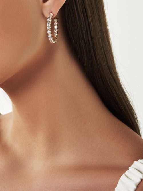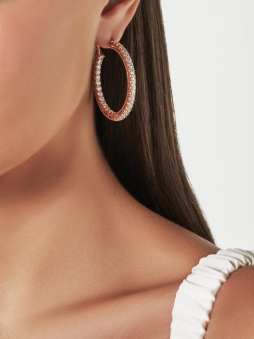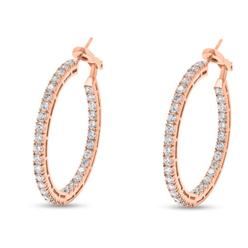 The Forever Diamond Hoop Earrings custom made in 18K Rose Gold featuring Round Diamond weighing…