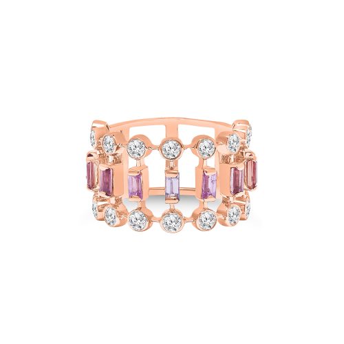 The Swirling Vortex of Diamonds Gold Ring custom made in 18K Rose Gold featuring Round…
