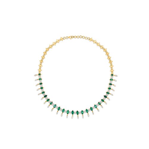 The Green Mantra Necklace custom made in 18K Yellow Gold featuring MO Diamond and Emerald…