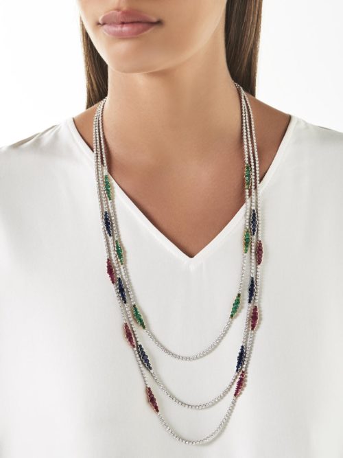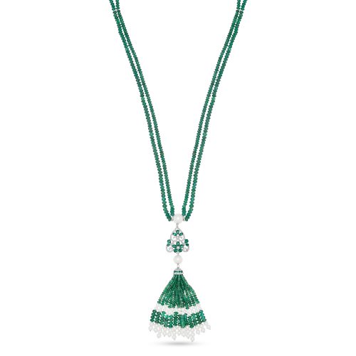 The Lady of Nature Necklace custom made in 18K White Gold featuring Pearl, Emeralds and…