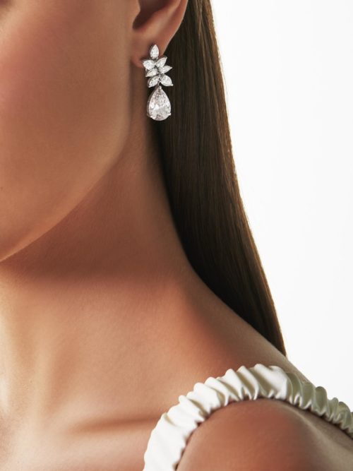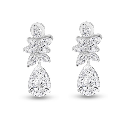 The Shimmering Raindrop Earrings custom made in 18K White Gold featuring Pear Diamond weighting 11.60…