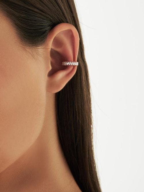 The ‘Everlasting Sparkle Ear Cuff single piece custom made in 18K Rose Gold featuring Marquise…