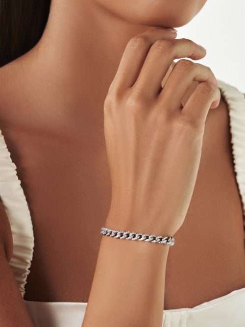 The Magnificent Iceberg Bracelet custom made in 18K White Gold featuring Round Diamond weighing 2.08…