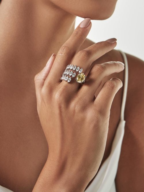 The Swirling Vortex of Diamonds White Gold Ring custom made in 18K White Gold featuring…